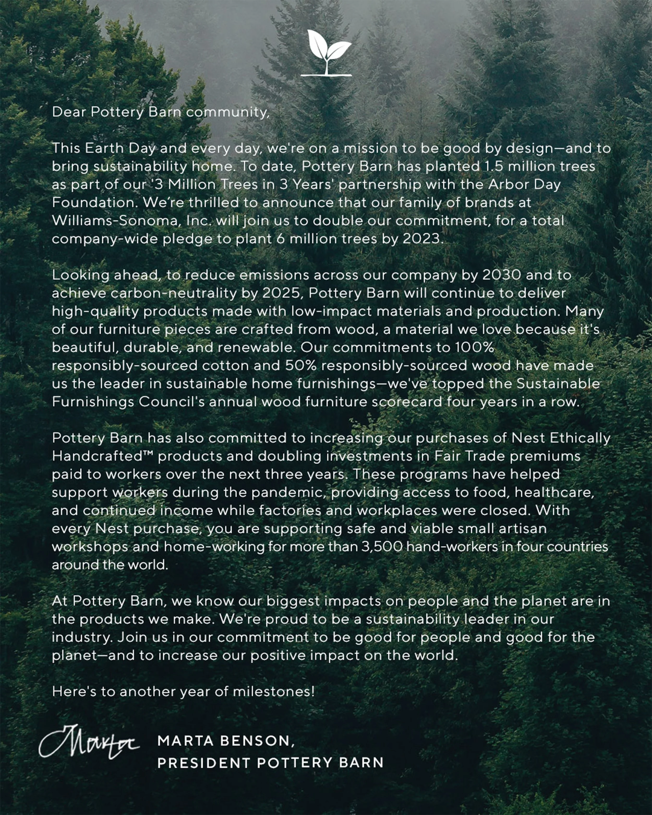 Ad Set: Good By Design A message from former President now CEO of Pottery Barn Brands, Marta Benson, on how their purchase make a difference at home and beyond. Organic Carousel GretchineApril 1, 2022 Facebook0 Twitter Tumblr Pinterest0 0 Likes